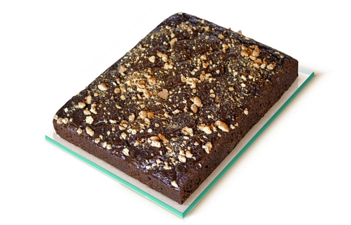Soffice impasto al cacao e gocce di cioccolato, farcito con crema di cioccolato e ricoperta da granella di amaretto