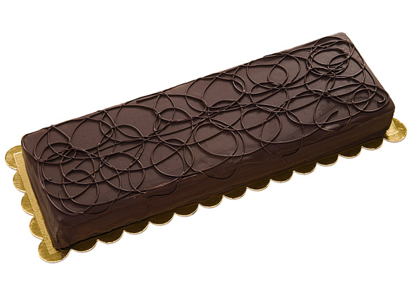 Tre strati di pan di spagna al cacao farcita con salsa di albicocche e cioccolato, glassata di cioccolato fondente